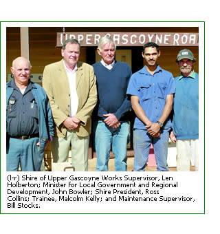 The Shire of Upper Gascoyne embraced the opportunity to apply for a $10,000 grant from the Department. By matching the contribution, Council has provided a valuable work experience opportunity for 18 year old scholarship recipient, Malcolm Kelly.